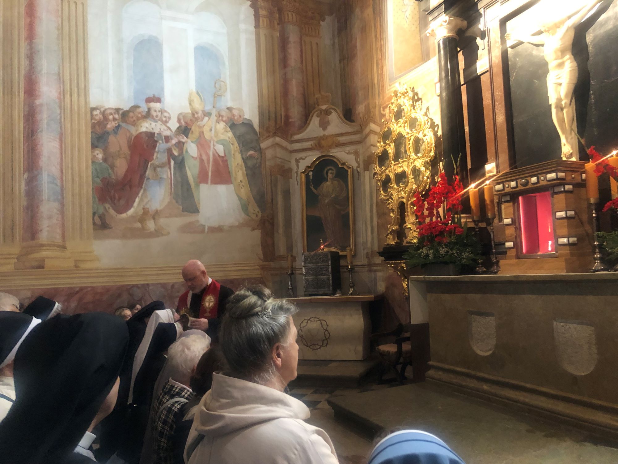 Na zakończenie pielgrzymki pątnicy ucałowali Relikwie Krzyża św. w Kaplicy Relikwii.